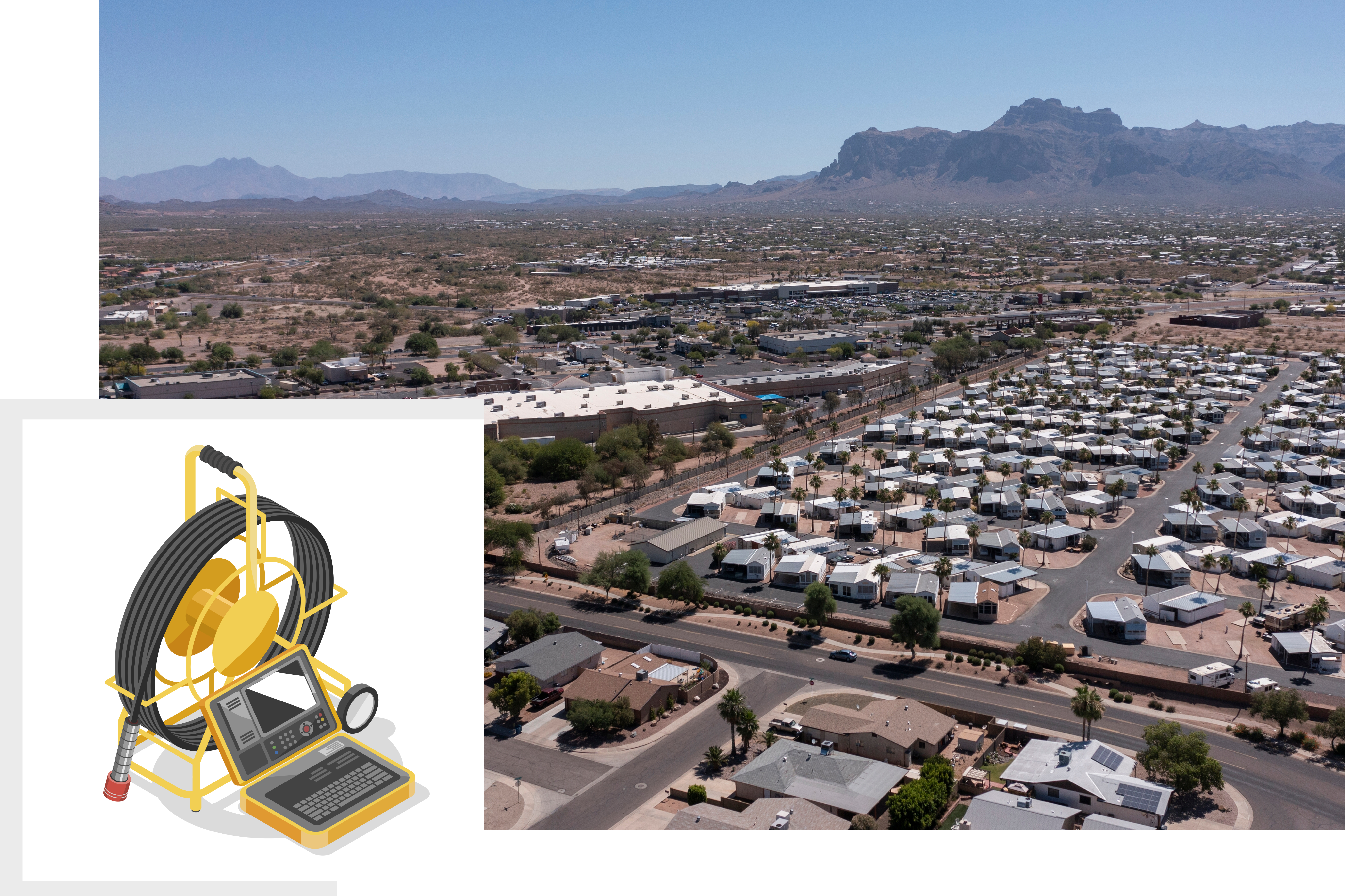 Apache Junction’s subsurface conditions make it one of the most expensive areas in the Valley for traditional sewer excavation. The rocky, caliche-heavy soil requires specialized equipment to break through, and many AJ properties have long sewer runs from house to street that multiply excavation costs. Add in landscape restoration and the project becomes prohibitively expensive.
